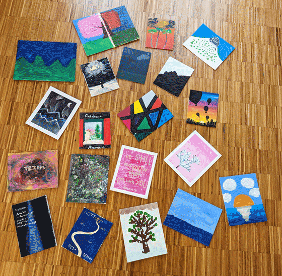 | | Die Firmlinge konnten ausfolgenden Themen auswählen: „Mein goldener Moment“, Verse aus einem Psalm, „Christ sein von A-Z“ oder dem Jahresmotto der diesjährigen Firmvorbereitung „Trotzdem“. Die Themen konnten sie vielfältig umsetzen. |