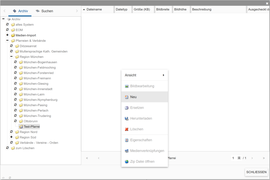 Mit einem "Rechts-Klick" im rechten Feld des neu erschienen Fensters, kann man mittels "Neu" Bilder und Dateien hochladen.