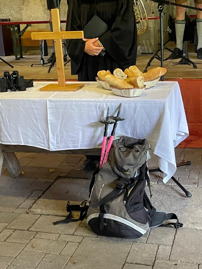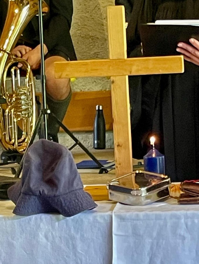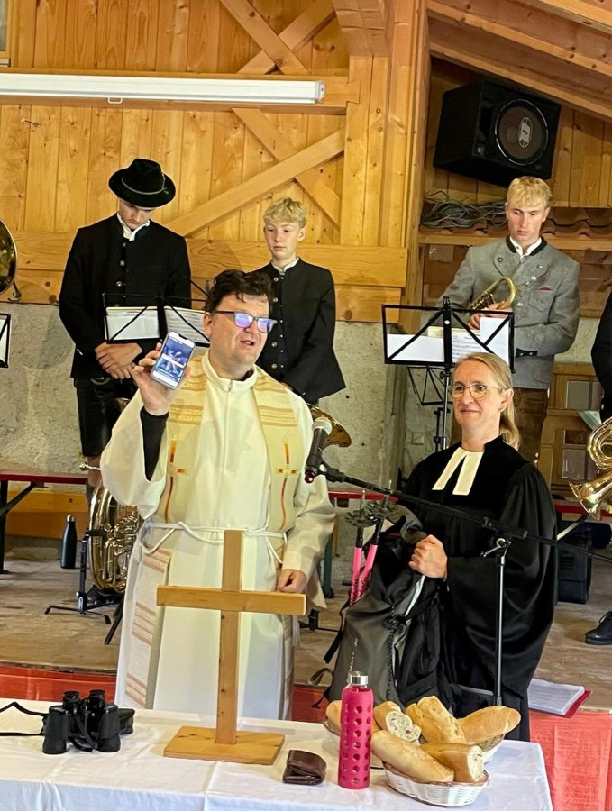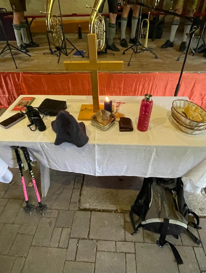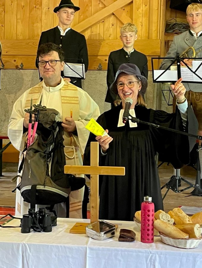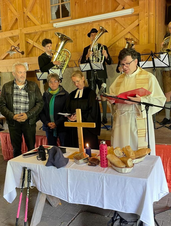Ganz ideal war das Wetter an unserem ökumenischen Bergggottesdienst nicht, aber es gab ein trockenes Plätzchen an der Käser Alm für unseren Gottesdienst - schee war’s auf jeden Fall!