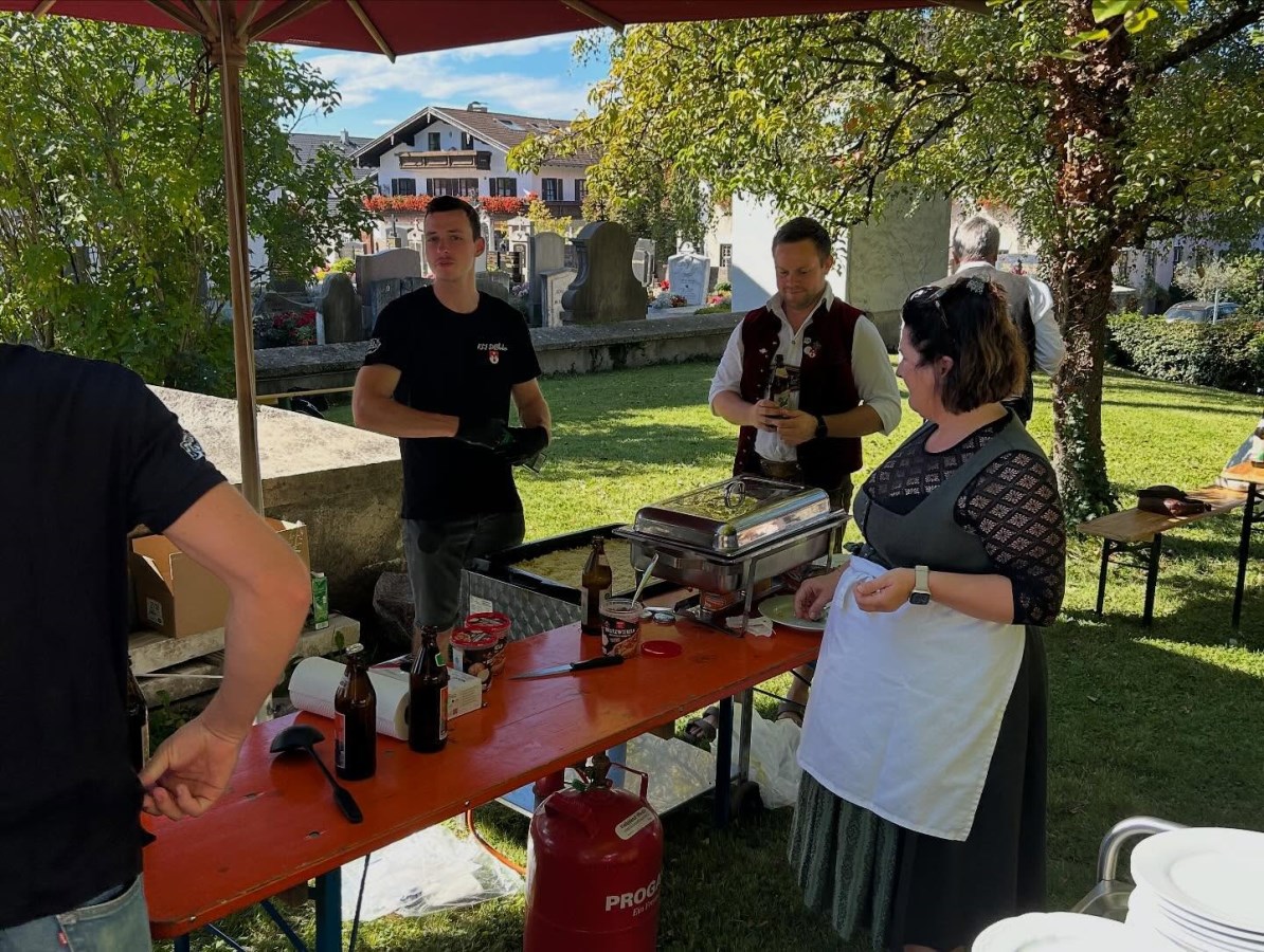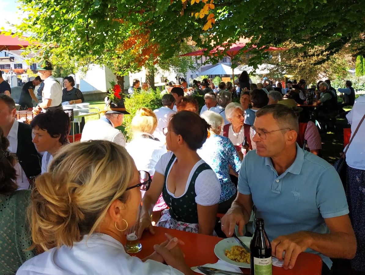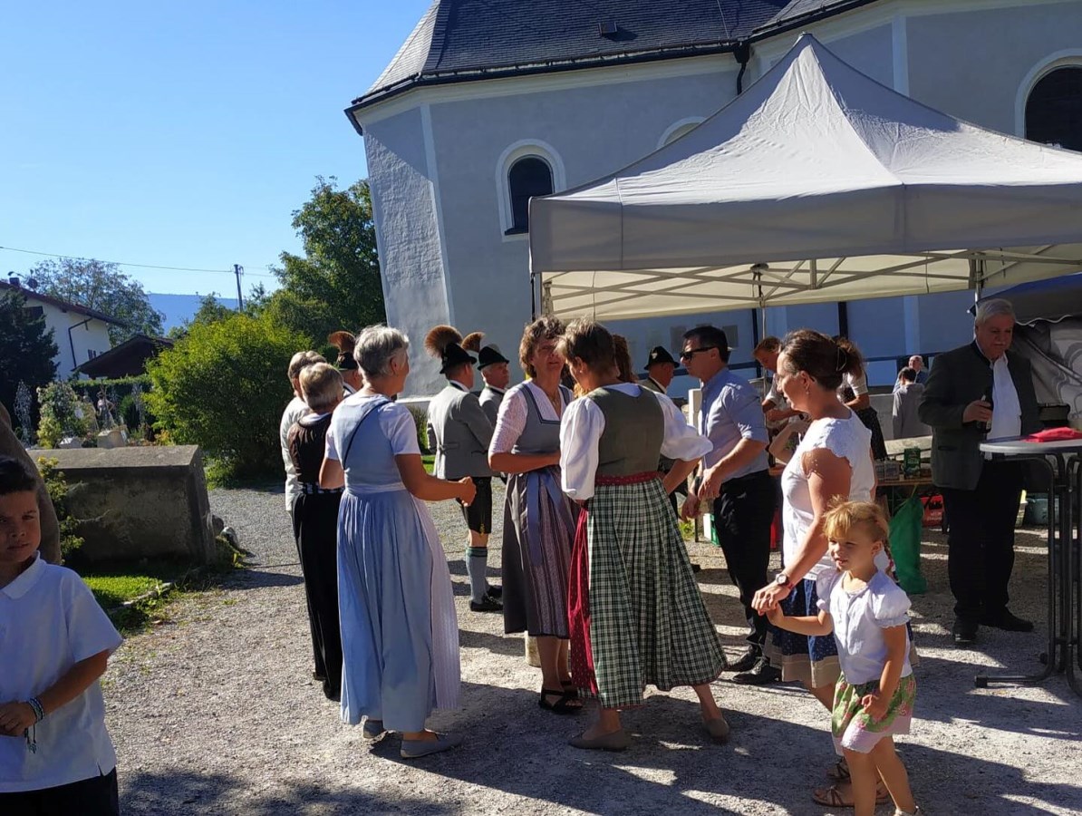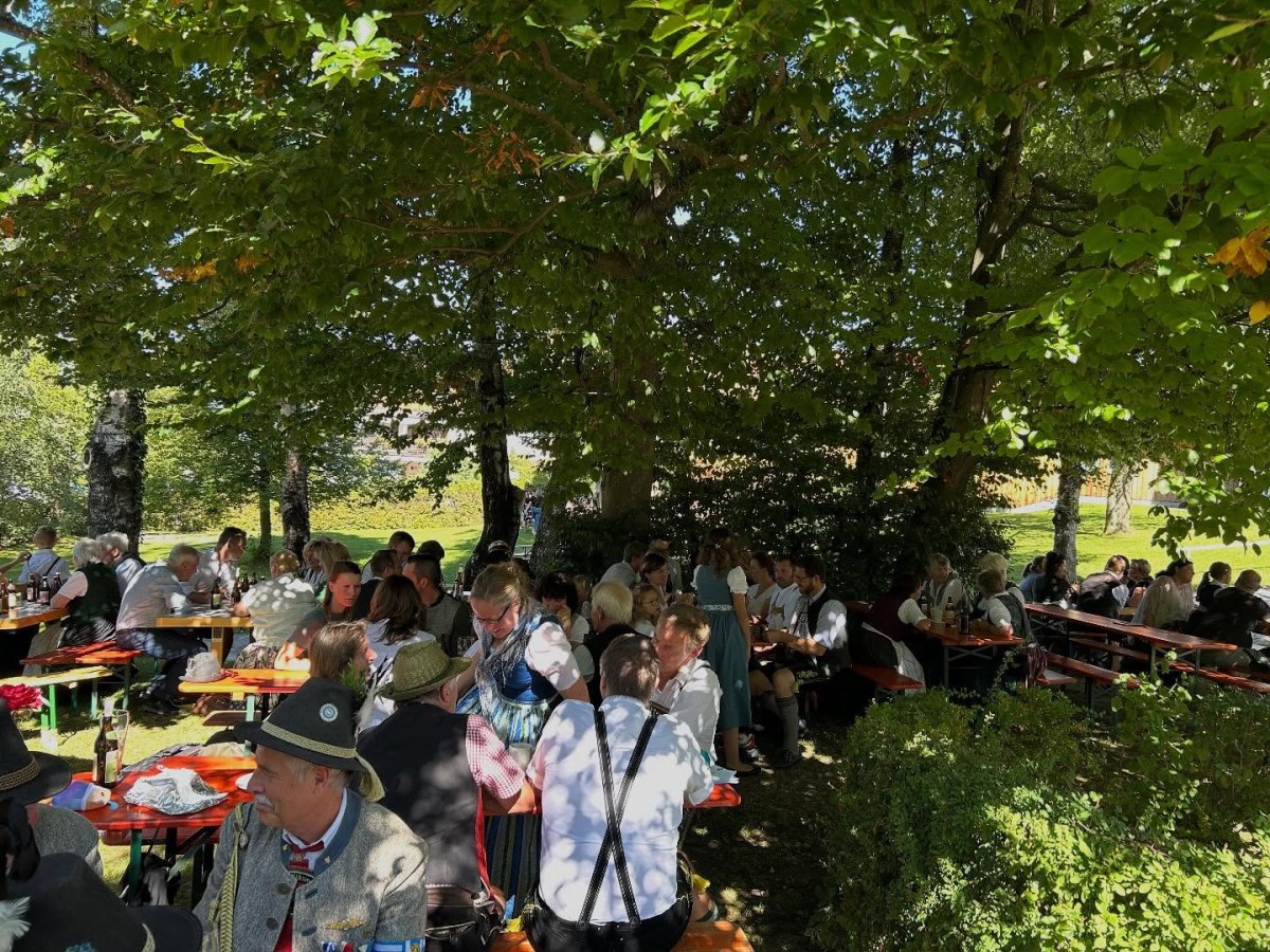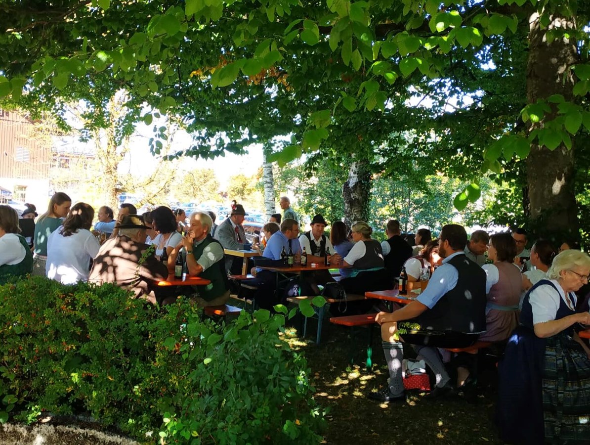 Im Anschluss an den Gottesdienst wurde das Pfarrfest im Pfarrgarten feierlich eröffnet – und zwar mit einem dreifachen Salut der Gebirgsschützen zu Ehren des Kirchenjubiläums. Bei strahlendem Sonnenschein fanden sich zahlreiche Gemeindemitglieder und Gäste ein, um den festlichen Tag gemeinsam zu feiern.