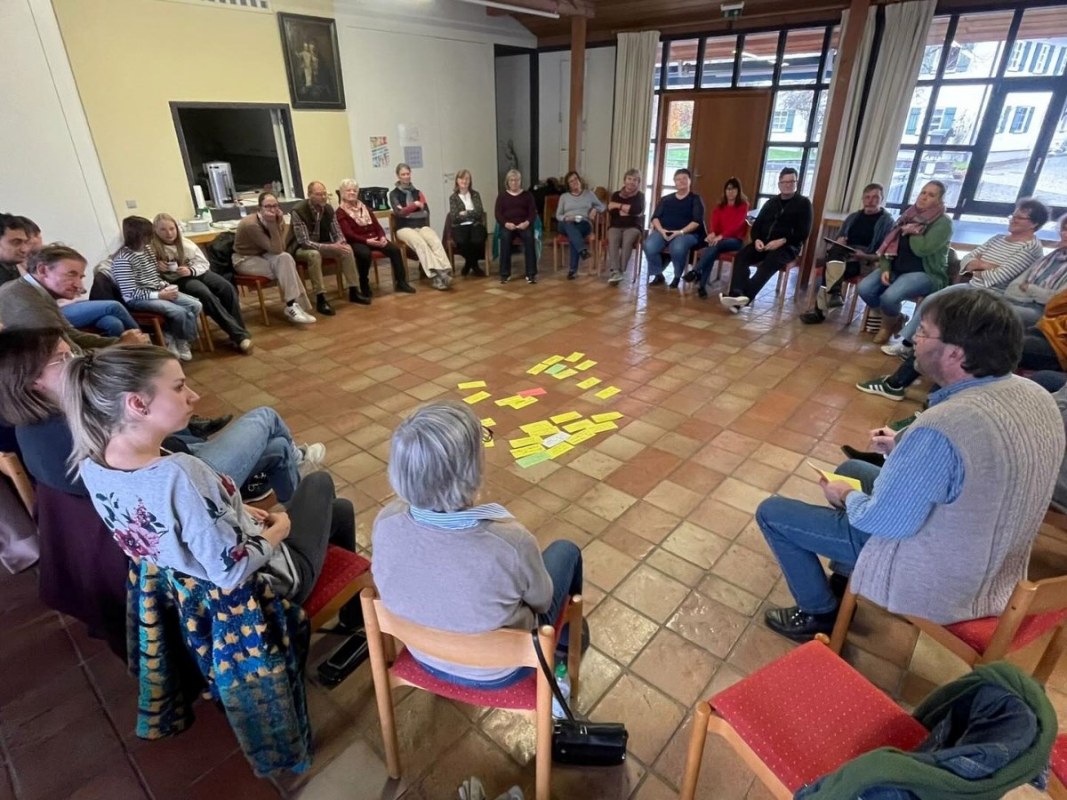 Am Samstag, 08.11. fand der Zukunftstag des Pfarrverbands statt. Über 30 Leute aus dem ganzen Pfarrverband und den unterschiedlichen Kontexten haben miteinander überlegt, sich ausgetauscht, und Impulse für das Pfarrverbandsleben in der Zukunft gesetzt. Was sich konkret entwickelt wird man sehen, aber dieses Miteinander war schon ein sehr positiver Impuls.