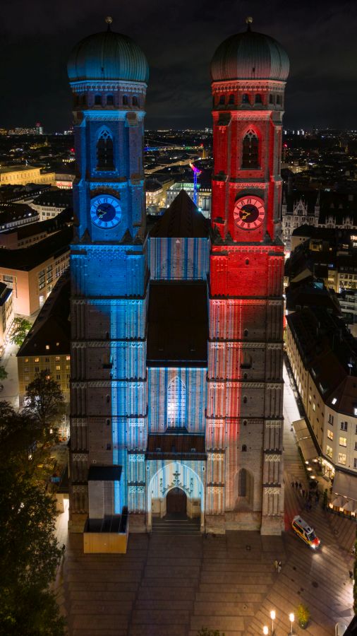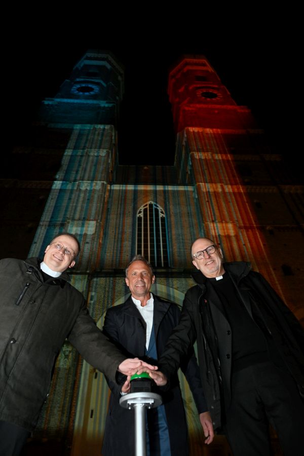 Im Anschluss an den Gottesdienst starteten Generalvikar Klingan, Bayerns Staatsminister für Umwelt und Verbraucherschutz Thorsten Glauber und weitere Partner der Bayerischen Klimaallianz per Knopfdruck die Beleuchtung des Münchner Liebfrauendoms in den Farben der bayerischen Klimastreifen. Jeder Streifen steht für die Durchschnittstemperatur eines Jahres in Bayern von 1881 bis 2024.