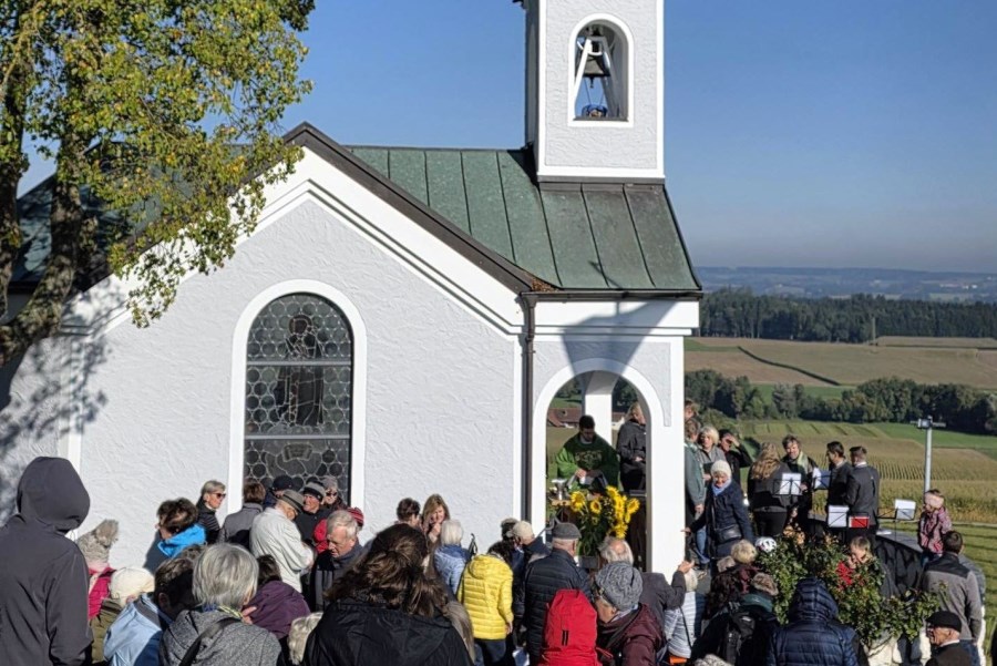 Nachdem im vergangenen Jahr am 3. Oktober die Bergmesse in Ramsau für die Gläubigen aus Dorfen und Oberdorfen wegen geringer Anmeldungen und schlechten Wetters abgesagt werden musste, entstand bei den beiden Pfarrgemeinderätinnen Isolde Freundl und Elisabeth Mengele-Kley die Idee in diesem Jahr eine Bergmesse „dahoam“ anzubieten. Mit ausreichend „Bergpanorama“ fiel die Wahl auf die Andrebauernkapelle in Thal bei Schiltern. Die Eigentümer der Kapelle, Familie Stadler, freuten sich sehr über die Anfrage aus dem Pfarrverband Dorfen – Oberdorfen und stellten gerne die Kapelle für die Bergmesse zur Verfügung. Ebenso kam sehr schnell die Zusage von Dekan Martin Ringhof die Messe zu zelebrieren sowie von der Stoaberger Musi (Familie Ernst aus Steinberg bei Schwindkirchen) die musikalische Gestaltung zu übernehmen.