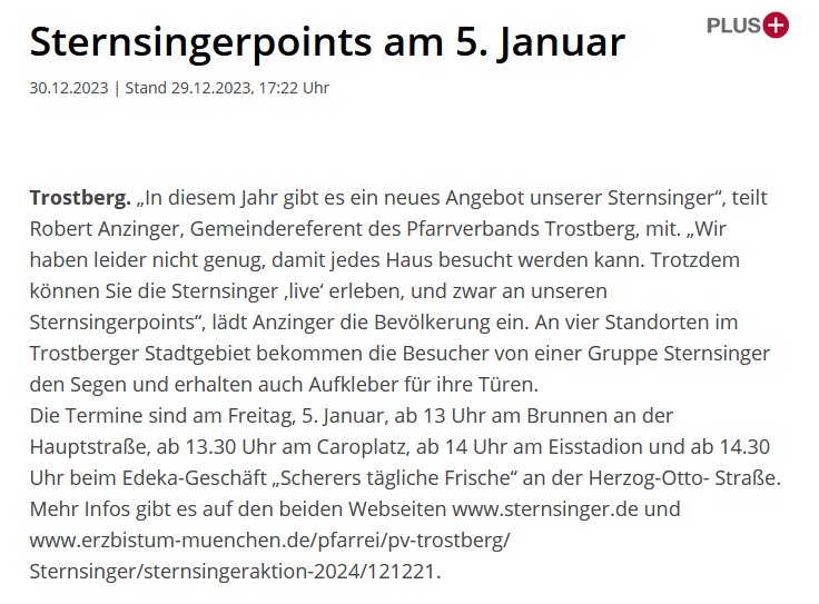 Infos über die Sternsingeraktion 2024 gibt’s bald über die Homepage und hier auf Instagram