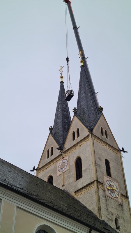 überprüften beide Turmspitzen von oben bis unten und besserten alle Schadstellen aus. Die