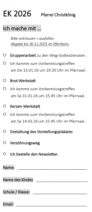 Für Fragen können Sie sich gerne an das Pfarrbüro wenden.