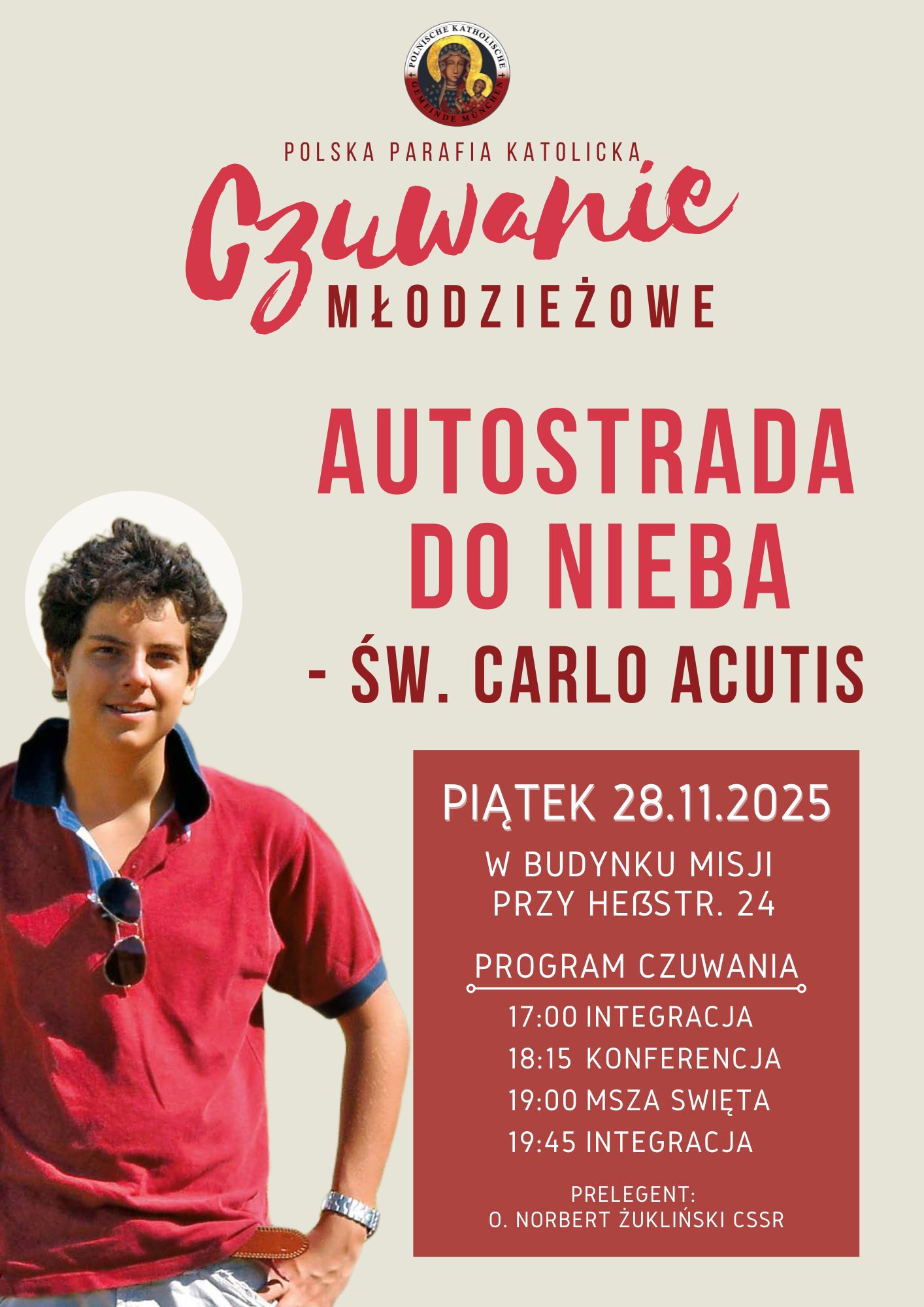 Serdecznie zapraszamy młodzież naszej parafii, jak również spoza niej, która ukończyła 14. rok życia do wzięcia udziału w kolejnym spotkaniu z cyklu "Czuwania młodzieży", które odbędzie się w piątek (28.11) od godz. 17.00 (Heßstr. 24).