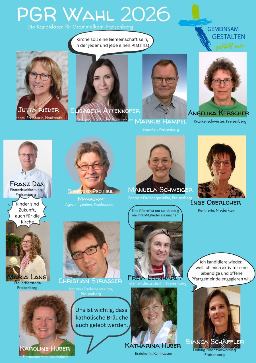 Kürzlich fand für die Pfarrei St. Peter in Grammelkam zunächst die Sitzung der in der Pfarrgemeinderatswahl gewählten zehn Mitglieder statt. Dies sind: Hildegard Kurz, Angela Bauer, Martina Kolbeck, Jutta Rieder, Brigitte Hörndl, Angelika Kerscher, Karoline Huber, Markus Hampel, Freia Leonhardt und Siegfried Pschibul-Markgraf. In der vorkonstituierenden Sitzung wurden außerdem noch Inge Oberloher, Thomas Kutschera und Manuela Rott in den neuen Pfarrgemeinderat hinzuberufen. Darüber hinaus ist Pastoralassistentin Yvonne Achilles ein amtliches Mitglied im Pfarrgemeinderat.