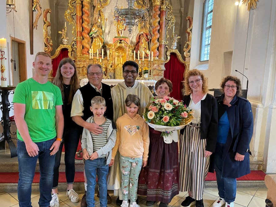 Gertraud und Hans Trostl feierten am 27. Mai 2022 im Familienkreis ihre Goldene Hochzeit. Sich kennen und lieben gelernt habe sich das Jubelpaar Ende der 60er Jahre in der Herbstschau in Moosburg. Am 27. Mai 1972 traten Hans und Gertraud vor dem Traualtar in der Pfarrkirche Bruckberg, wo ihnen Pfarrer Georg Liesch den Bund der kirchlichen Ehe schloss. Die Hochzeitsfeier fand im kleinen Familienkreis im Gasthaus Strasser in Bruckberg statt. Aus der glücklichen Ehe gingen Tochter Kerstin und Sohn Holger hervor. Das Wohlergehen in der Familie ist dem Hochzeitsjubelpaar schon immer das Wichtigste. So haben die beiden immer ein offenes Ohr für die Sorgen und Probleme ihrer Kinder und sind jederzeit für sie da. Auch um die Enkelkinder Lisa-Marie und die Zwillinge Jonathan und Pauline kümmern sie sich liebevoll und wenn sie gebraucht werden, sind sie „Zur Stelle“. Im Jahre 1997 wurde Silberhochzeit mit Familie, Verwandtschaft und Freunden im Cafe` Ampertal in Haag gefeiert. In den mittlerweile 50 Jahren hat das Paar viele tolle Momente erlebt, aber auch einige Tiefpunkte durchstehen müssen. Dennoch hielten sie immer zusammen und waren füreinander da. Die Goldene Hochzeit gemeinsam erleben zu dürfen, ist dem Jubelpaar ein Anlass zu feiern und zu danken. Mit einem Dankgottesdienst in der Pfarrkirche St. Jakobus der Ältere endete der Jubeltag. Genau wie vor 50 Jahren machten sie ihr Eheversprechen am Altar vor Gott erneut. Mit dem herzergreifenden Versprechen überraschte sie Pater Jis Mangaly sehr emotional vor ihrer Familie und der Pfarrgemeinde.