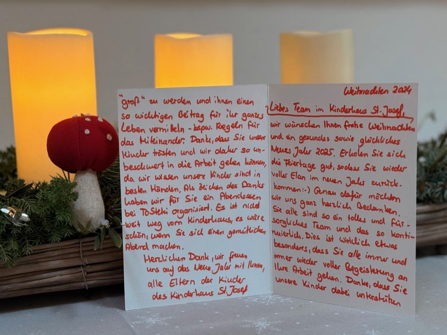 Wir wünschen allen Familien ein schönes Weihnachtsfest, entspannte Stunden im Kreise der Familie und besinnliche Feiertage. Wir freuen uns riesig über das wunderbare Weihnachtsgeschenk der Elternschaft und bedanken uns dafür ganz herzlich bei allen Familien aus dem Kindergarten und Hort.