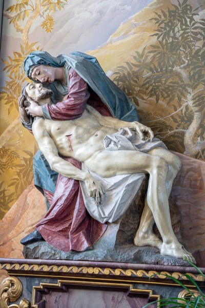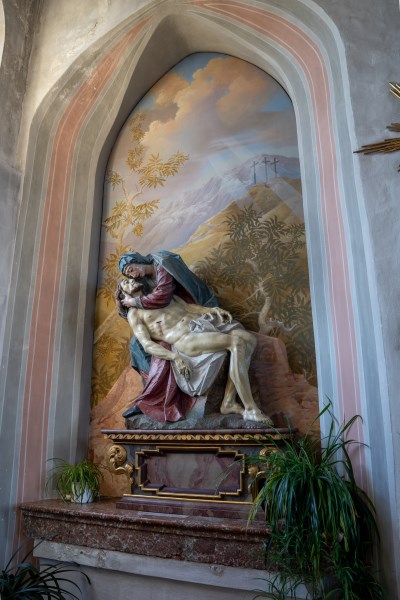Als wohl bedeutendstes und bekanntestes Kunstwerk der Eiselfinger Pfarrkirche ist die Pietà, die heute am linken Seitenaltar steht, einzustufen. Die Signatur und Datierung 1758 auf der Rückseite weisen die Figur als eine Arbeit Ignaz Günthers aus, der unter anderem für die Klöster Altenhohenau, Attel und Rott gearbeitet hat. Mittlerweile sprechen gute Gründe dafür, dass der letzte Abt von Attel, Dominikus II. Weinberger, bei der Versteigerung von Kirchenbesitz im Zuge der Säkularisation diese „schmerzhafte Muetter“ erworben und bei der Verlegung seines Wohnsitzes in den Pfarrhof von Eiselfing um 1816/1818 hierher mitgebracht hat.