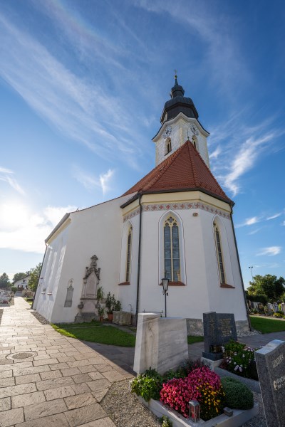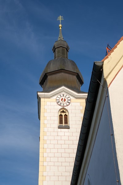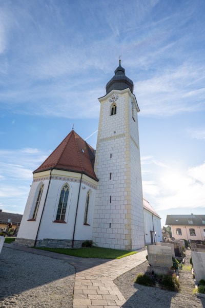 Der gotische Baukörper blieb fortan unverändert und erfuhr erst 1859/1860 eine Verlängerung um eineinhalb Joche nach Westen für den Einbau einer größeren Musikempore. Vermutlich wurde damals auch der neugotische Westeingang geschaffen, der mit gotischen Originalstücken versetzt ist. Der Kirchturm könnte ursprünglich ein Satteldach besessen haben, der 1749 durch einen Spitzhelm ersetzt, im Jahr 1800 jedoch durch Blitzschlag zerstört wurde. Daraufhin bekam er die heute noch markante „verkröpfte Haube“, die zunächst mit Schindeln gedeckt war und 1891 mit Kupferblech verkleidet wurde.