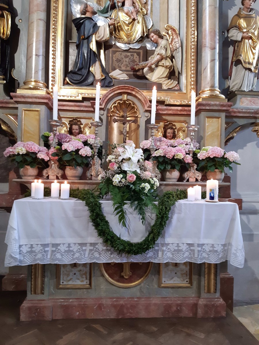 Viele Mitglieder und Pfarrangehörige feierten in der Pfarrkirche St. Laurentius eine feierliche Maindacht des Kath. Frauenbundes . Die Andacht zum Thema Maria, die Knotenlöserin, wurde von der Geistl. Beirätin PR Frau Judith Seipel und den beiden Vorsitzenden Evi Steininger und Kathi Hinterholzer gestaltet und vom Feldkirchener Dreigsang mit schönen Marienliedern und instrumental umrahmt.