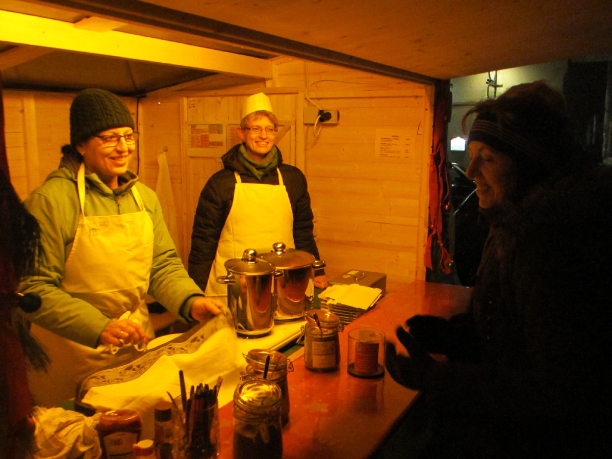 Von kommerziellen Christkindlmärkten unterscheidet sich der Andreasmarkt nicht nur in der Größe. Die auf dem Andreasmarkt angebotenen Dinge sind alle selbst gemacht. In fünf Marktständen gab es in liebevoller Handarbeit gebastelten Advents- und Weihnachtsschmuck, Adventskränze und verschiedenste Geschenkartikel von handgestrickten Socken über Seifen bis zu Keramik, aber auch St.-Andreas-Marmeladen und andere Schmankerl wie Senf und Essig. Vorweihnachtliches Gebäck und Glühwein gehörten natürlich auch dazu, aber auch eine kräftige Brotzeit wie Würstl oder Kartoffelsuppe.