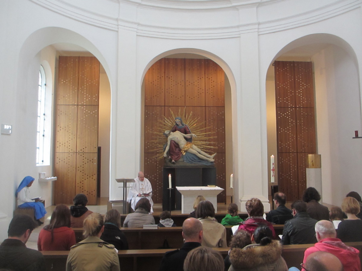 Am 12. April um 12.00 war es das erstmal soweit: die Bänke in der Schmerzhaften Kapelle waren gefüllt und die Sonne strahlte durch die Fenster. Auch die Teilnahme am sich anschließenden Angebot gemeinsam in einem Lokal Mittag zu essen fand reichlich Anklang. Ein gelungener Anfang, der jedes Monat einmal wiederholt werden soll.