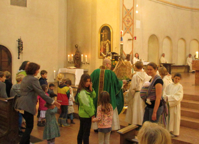 Am Ernte-Dank-Tag lud der Pfarrverband alle Aktiven aus dem Pfarrverband zu einem Gottesdienst. Im Rahmen des Gottesdienstes fand auch eine Taufe statt. Anschließend ging es für alle Aktiven zur Dankesfeier.