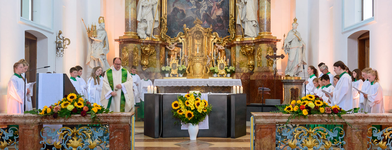 Ein wundervoll geschmückter Altarraum umrahmte den Festgottesdient zu Erntedank in der Rotter Pfarrkirche.