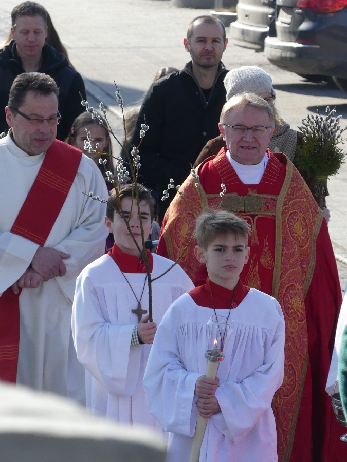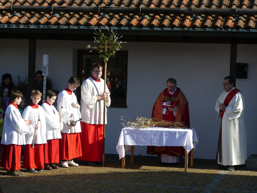 Pfarrer Roman Majchar hatte eingangs bei der Palmbuschweihe vor der Saaldorfer Schule und am Surheimer Dorfplatz darauf hingewiesen, dass die Tage des Fastens auf Ostern hin vorbei seien. An diesem Palmsonntag trete die Kirche in die österlichen Feierlichkeiten ein und begleite Jesu auf seinem Leidensweg. „Damit wir Anteil erhalten an seiner Auferstehung und seinem Leben.” Die gesegneten Palmzweige seien Zeichen des Lebens und der Hoffnung, beschrieb Christa Wohlschlager im Kindergottesdienst in Saaldorf.