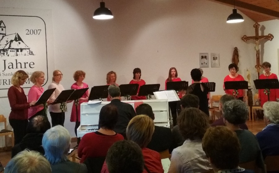 Nach der Begrüßung durch die Ortsvorsitzende wurden in dieser Andacht die Geheimnisse des Lichtreichen Rosenkranzes meditiert mit Impulsen aus dem jeweiligen Evangelium und aus heutiger Sicht. Zwischendurch bereicherte der Frauenchor aus Laufen mit schönen Marienliedern die Andacht.