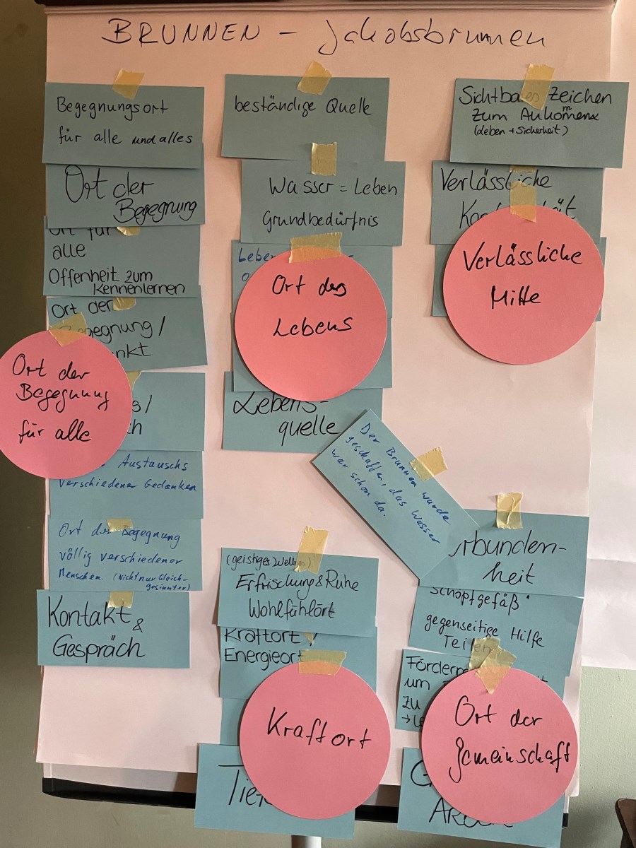 Der Brunnen ist und war schon immer ein fester und erkennbarer Ort, zu dem alle Zugang haben, der für alle offen ist. Er lädt ein zu vielfältigen Begegnungen, zum Kennenlernen, zu Gespräch, Freude und Feiern. Hier lassen sich neue Erkenntnisse und Erfahrungen gewinnen. In unserem Pfarrverband können wir alle auf vielfältige Weise und in gegenseitiger Ergänzung zum Schöpfen und auch zum Weitergeben des Wassers beitragen, so dass an unseren „Brunnen“ auch suchende Menschen die Erfahrung machen können, mit Jesus Christus in Berührung zu kommen.