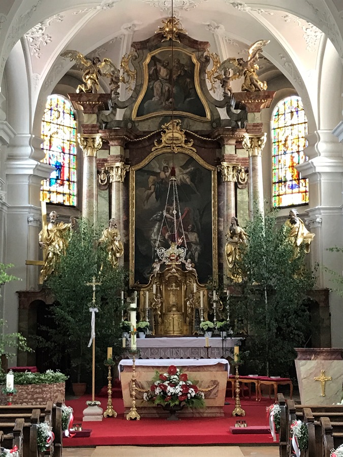 Es wurde daraus ein wunderbarer Gottesdienst voll Freude und herzlicher Dankbarkeit für sein bisheriges Wirken. Die Kindergartenkinder aus Wartenberg und Langenpreising ließen vor der Kirche für ihn Luftballons steigen und beschenkten ihn mit einem „I mog di“-Kuchenherz, alle Ministranten und viele Priesterkollegen, angeführt von Domkapitular Föckersperger, der auch die Festansprache hielt, begleiteten ihn in die festlich geschmückte Kirche, der Chor unter der Leitung von Christian Rott stimmte ihm zu Ehren "Gaude Mater Polonia" (Freue dich Mutter Polen) an und die Gläubigen aus dem ganzen Pfarrverband sangen zum Dank mit ihm das „Großer Gott wir loben dich“. Sehr gerührt bedankte sich Pfarrer Bartkowski bei allen, die bisher mit ihm unterwegs waren, für die vielen Zeichen der Sympathie und Ermutigung. Sein Blick sei aber nach vorne gerichtet und so werde er auch weiterhin mit ganzem Herzen Seelsorger und Priester sein.